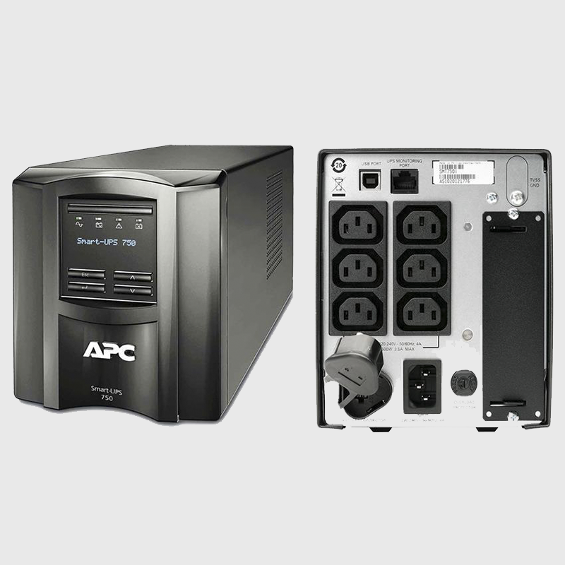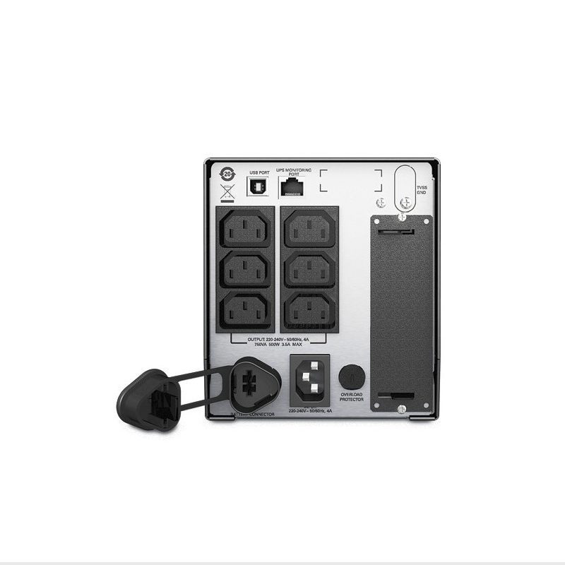 APC Smart-UPS. Topologia UPS: Linha interativa, Forma de onda: Seno, Voltagem de entrada operativa (min): 151 V. Tipos de AC outlet: Dispositivo para ligar C13, Ficha: Dispositivo para ligar C14, Quantidade de saídas AC: 6 tomada(s) CA. Tecnologia da bateria: Chumbo-ácido selado (VRLA), Capacidade de bateria: 146 VAh, Tempo de backup (meia máxima)): 4,6 min. Fator forma: Tower, Cor do produto: Preto, Comprimento do cabo: 1,83 m. Comprimento: 138 mm, Largura: 358 mm, Altura: 157 mm